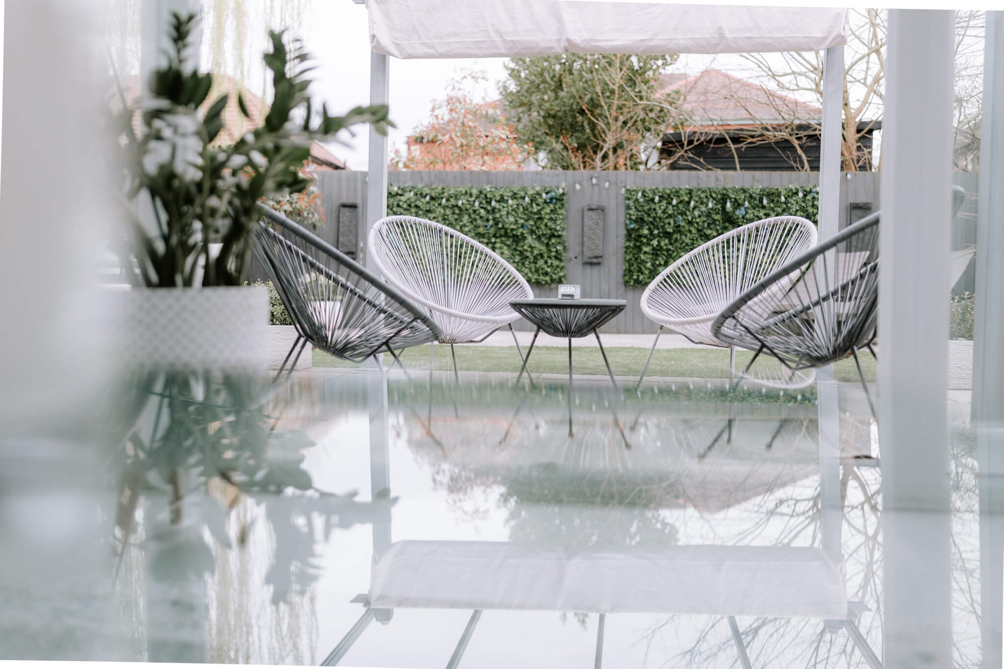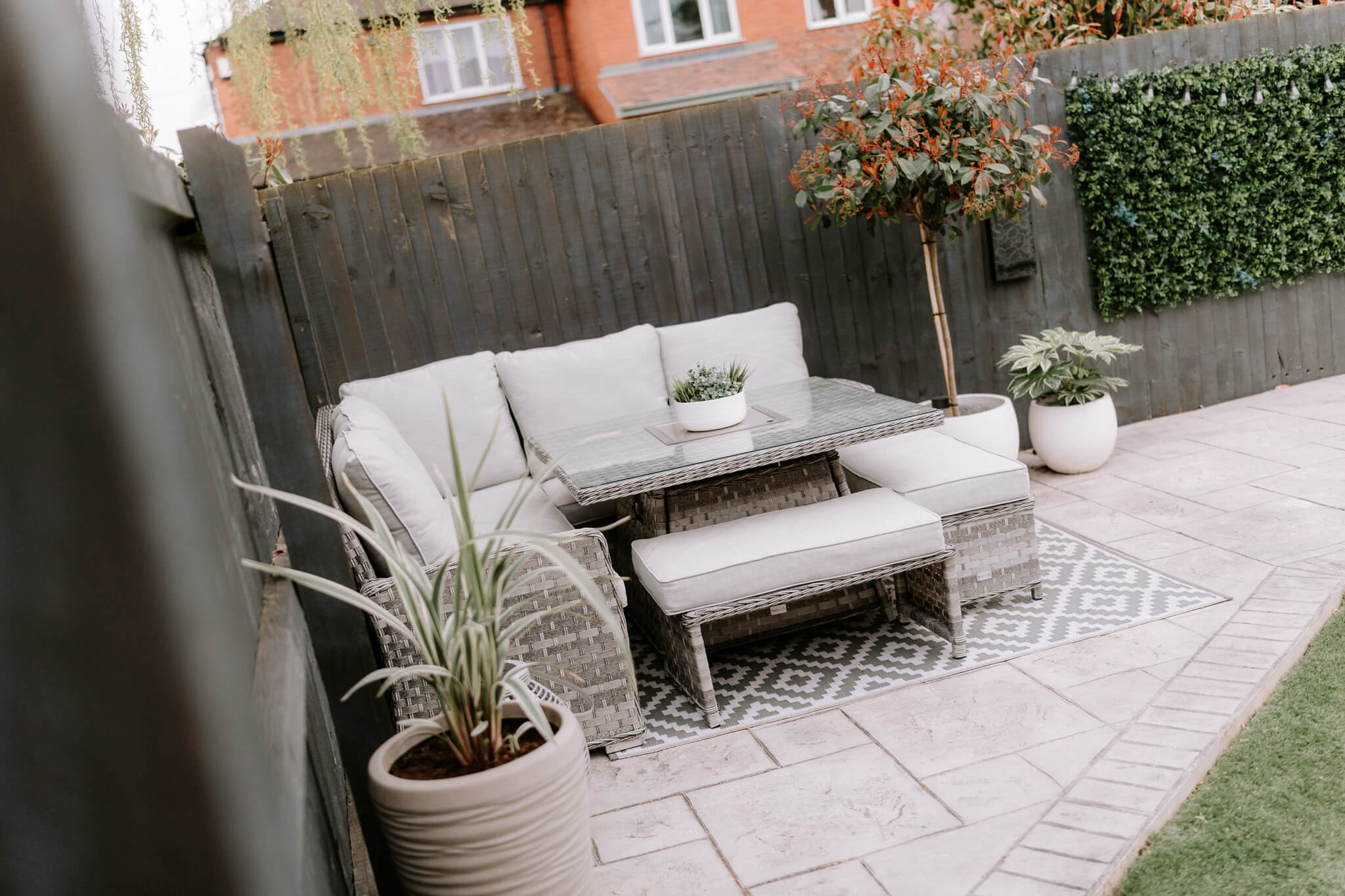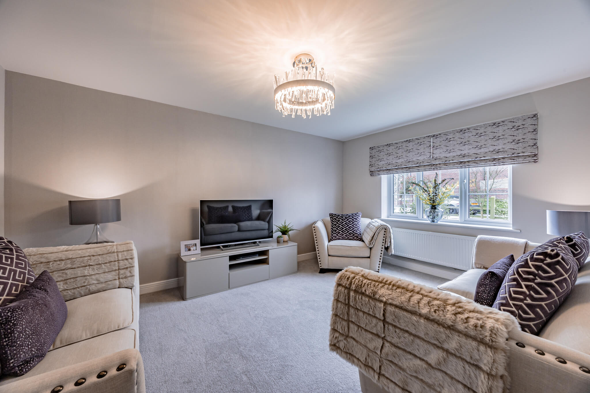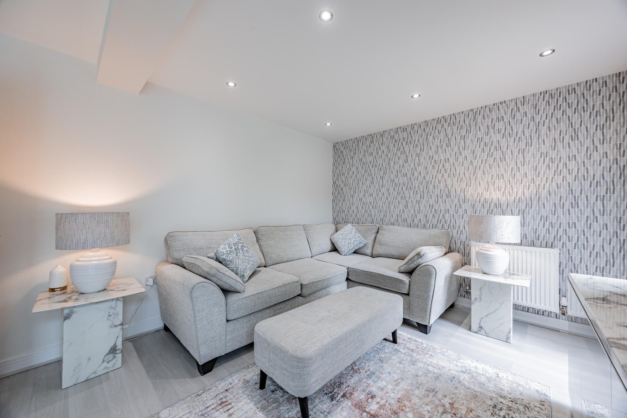 To the rear of the house a gorgeous, landscaped garden reflects the sense of style that flows throughout the house conjuring an enviable place to escape from the world outside. The French doors of the sitting room make it temptingly easy to step out beneath the shelter of a stylish pergola’s retractable canopy and enjoy al fresco dining in style on a stone paved patio. Extensive decking extends out to each side and the paving reaches around a central artificial lawn to a blissful second patio stretching out across the width of the garden giving you further excuse to recline in the summer sun. Perfectly positioned to admire idyllic views of the sun dipping down over the neighbouring fields, an established lawn at the front of the house reaches up to the canopied doorway encompassed by beds of roses and shrubs. To its side a broad brick paved driveway supplies private off-road parking for several vehicles, giving access to the integral garage which has been cleverly converted into handy storage space at the front and a considerably sized second space that could easily become a gym.